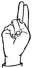 На ћирилици написано МОМЧИЛО ШВРАКА састоји се из 13 слова [?]. Исписано ћириличном једноручном азбуком за глувонеме: